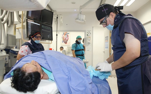 Se trata de un procedimiento de mínima invasión que ofrece el Instituto Mexicano del Seguro Social (IMSS) a sus derechohabientes y tiene como fin examinar las arterias a través de una punción en la muñeca o en la ingle del paciente.