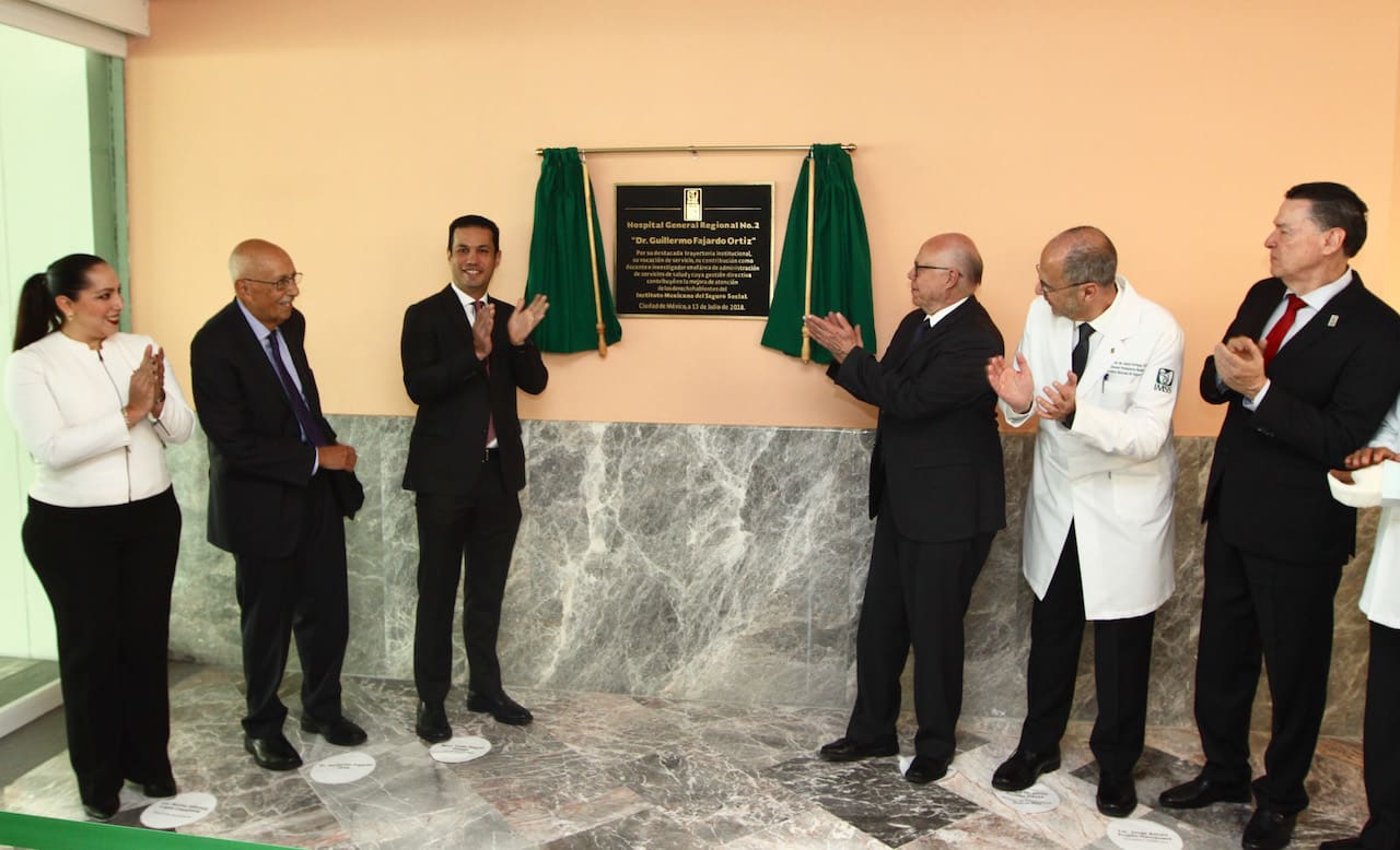 Hoy queremos, dijo Tuffic Miguel, que este espacio se transforme en un homenaje a un médico y mexicano distinguido, el doctor Guillermo Fajardo Ortiz. Plasmar su nombre en uno de los hospitales del Seguro Social representa una distinción y un enorme agradecimiento por la labor que ha desarrollado en favor de la salud de los mexicanos.