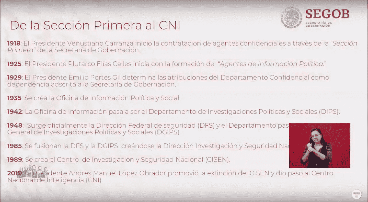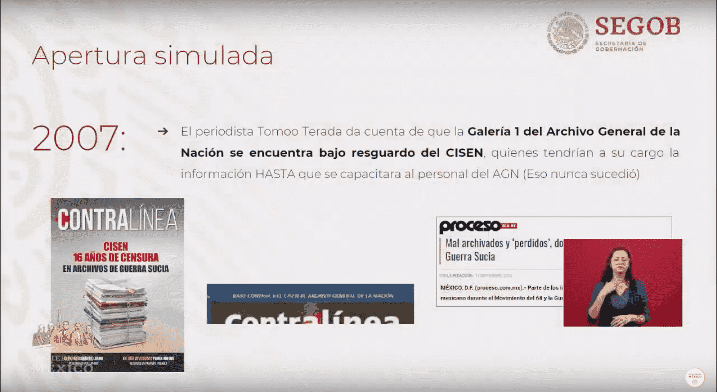 Mensaje de la transmisión: Transparencia total en la apertura de archivos del CISEN