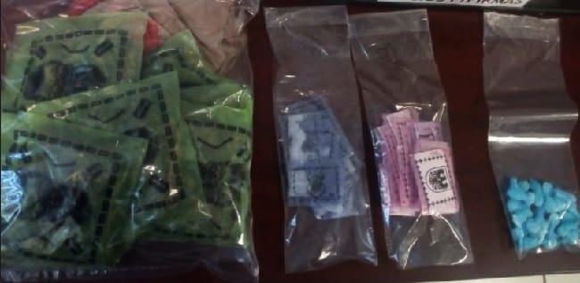 Ante esta acción los agentes procedieron a realizar trabajos de reconocimientos en el área, y al aproximarse a la bolsa se percataron de que contenía la cantidad de más de 30 porciones de polvo blanco parecido a la cocaína, más de 20 porciones de una sustancia granulada como el cristal, así como más 10 porciones más del químico granulado, pero en otra presentación y varias dosis de hierba verde y seca con características de la marihuana.