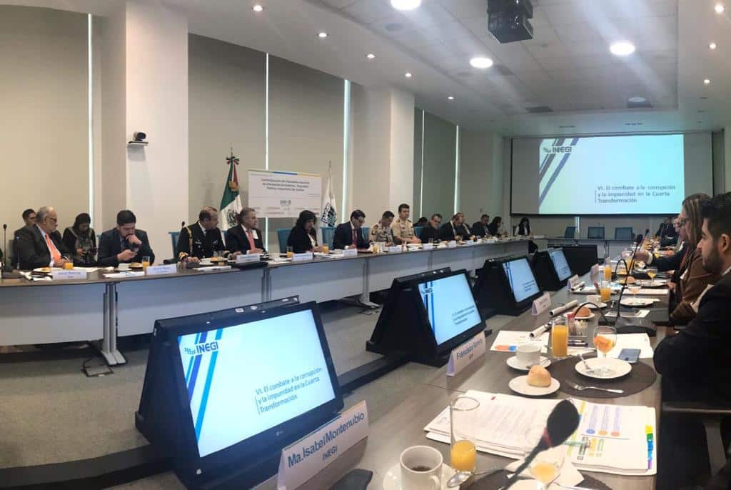 La sesión estuvo presidida por Adrián Franco, vicepresidente del INEGI, y en ella participaron representantesde las secretarías de la Defensa Nacional, de Marina, de Gobernación, de Seguridad y Protección Ciudadana y de Hacienda y Crédito Público, así como de la Guardia Nacional y de la Fiscalía General de la República.