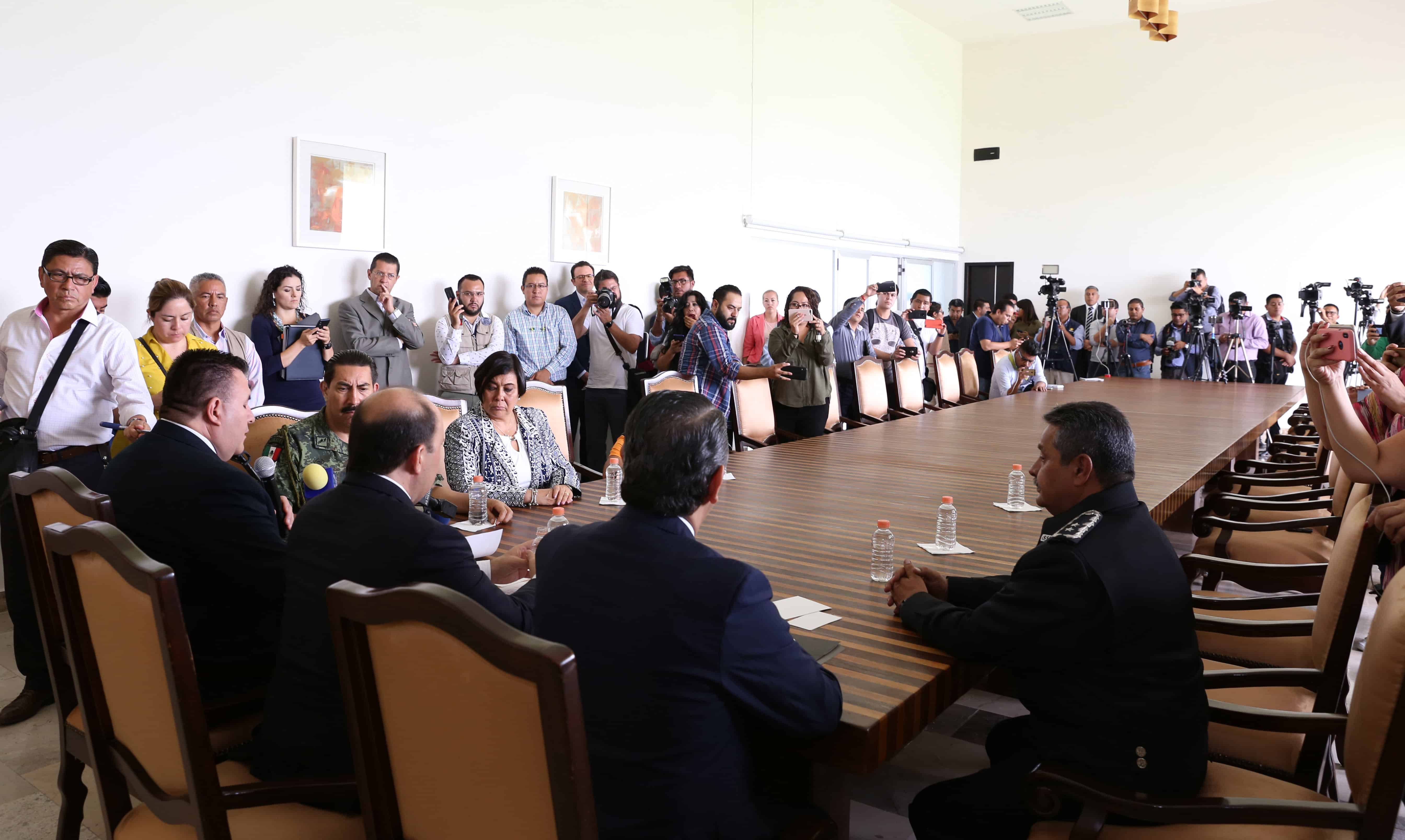 Ante los medios de comunicación, también estuvieron presentes María de Lourdes Rosales Martínez, secretaria de Seguridad Pública y Tránsito Municipal y el general de brigada DEM, José Alfredo González Rodríguez, comandante de la XXV Zona Militar, actores importantes en la detención del presunto delincuente