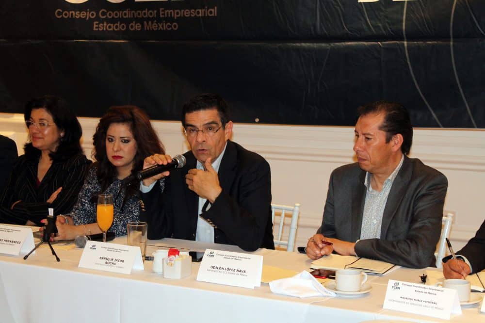 Durante un encuentro con afiliados del Consejo Coordinador Empresarial (CCEM) y acompañado por la Secretaria del Trabajo, Martha Hilda González Calderón, añadió que se desarrolla una estrategia de promoción de la inversión con el objetivo de acompañar y cuidar las inversiones, así como brindar un dinamismo económico correspondiente con el potencial productivo que tiene la entidad.