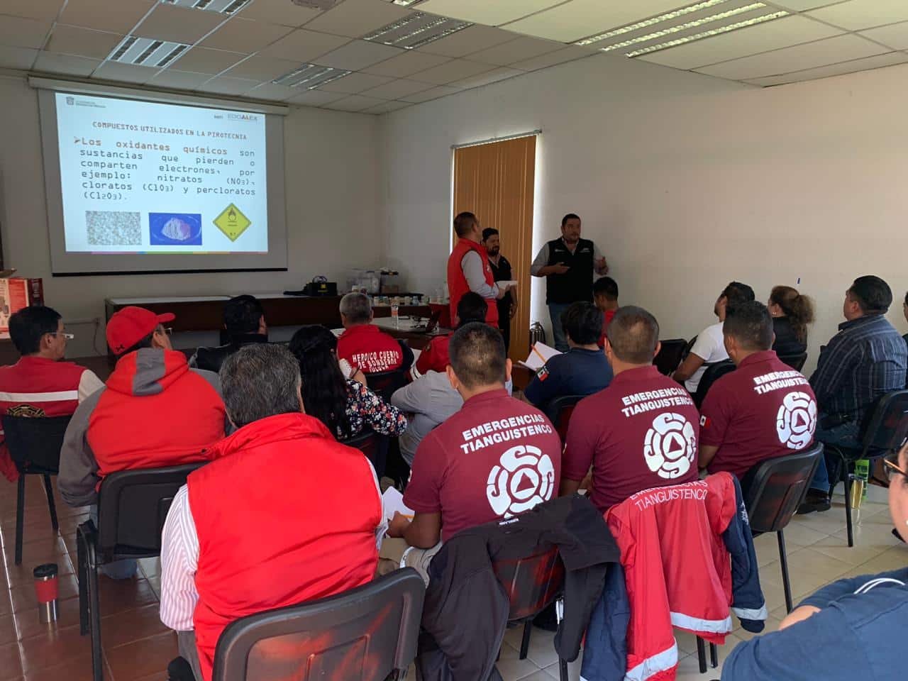 El funcionario mexiquense acompañó al personal de la Subdirección de Capacitación de este organismo, al curso “Medidas de seguridad, manejo de sustancias químicas aplicadas en la pirotecnia y manejo de artíficos pirotécnicos”, dirigido a 60 directores de Protección Civil de los municipios que integran el Valle de Toluca.