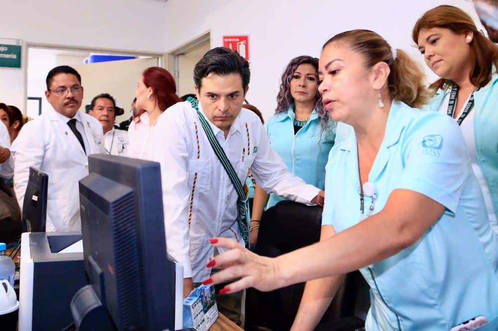 Durante el recorrido, el personal de la UMF explicó el funcionamiento del sistema para agendar citas médicas, así como el trámite de referencia a los pacientes al segundo nivel de atención mediante un procedimiento digital en línea en el que ahorra tiempo y evita largas filas.