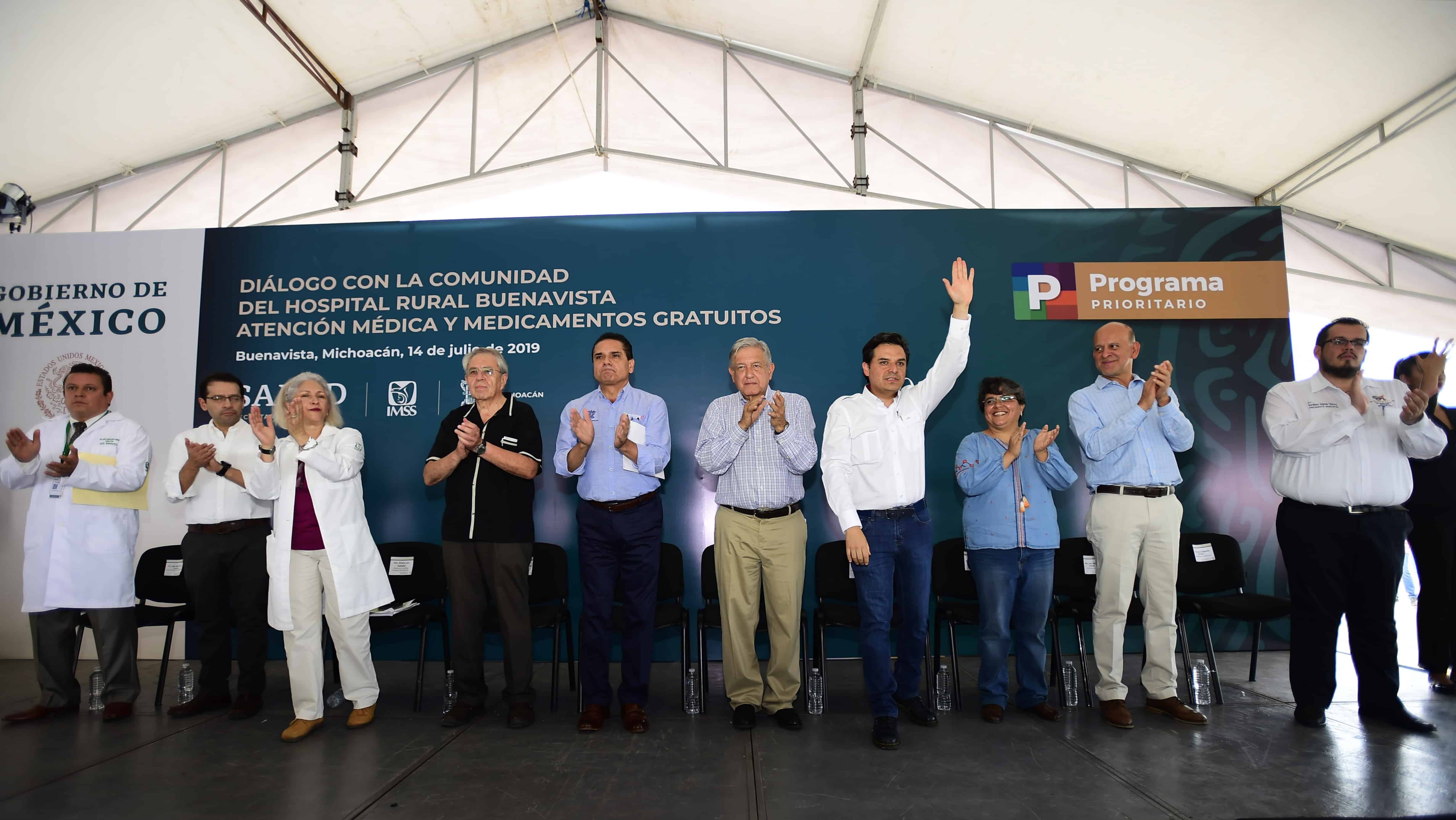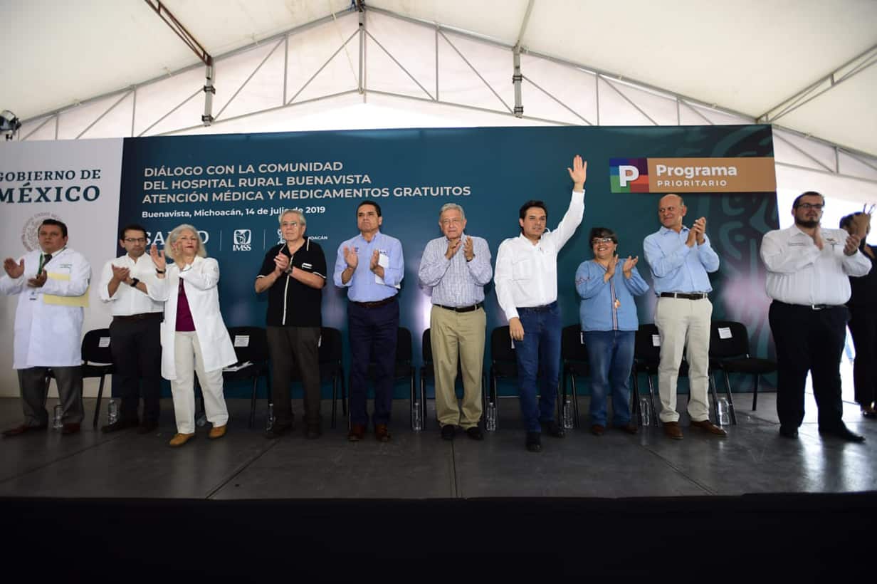 Asisten a esta gira con el Presidente de México, el gobernador de Michoacán, Silvano Aureoles Conejo; el secretario de Salud, Jorge Alcocer Varela; el director general del ISSSTE, Luis Antonio Ramírez Pineda; el titular del Instituto Nacional de Salud para el Bienestar, Juan Antonio Ferrer Aguilar; la oficial mayor de la Secretaría de Hacienda, Raquel Buenrostro Sánchez; el director general del hospital rural, José María Ávila Dávalos; y el presidente municipal, Giordano Zepeda Chávez.