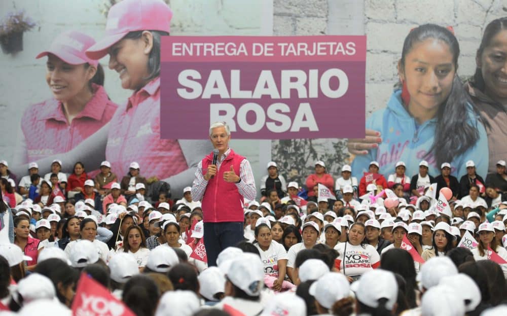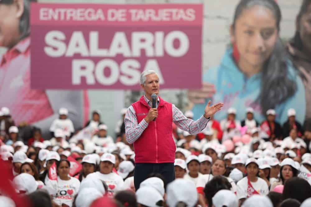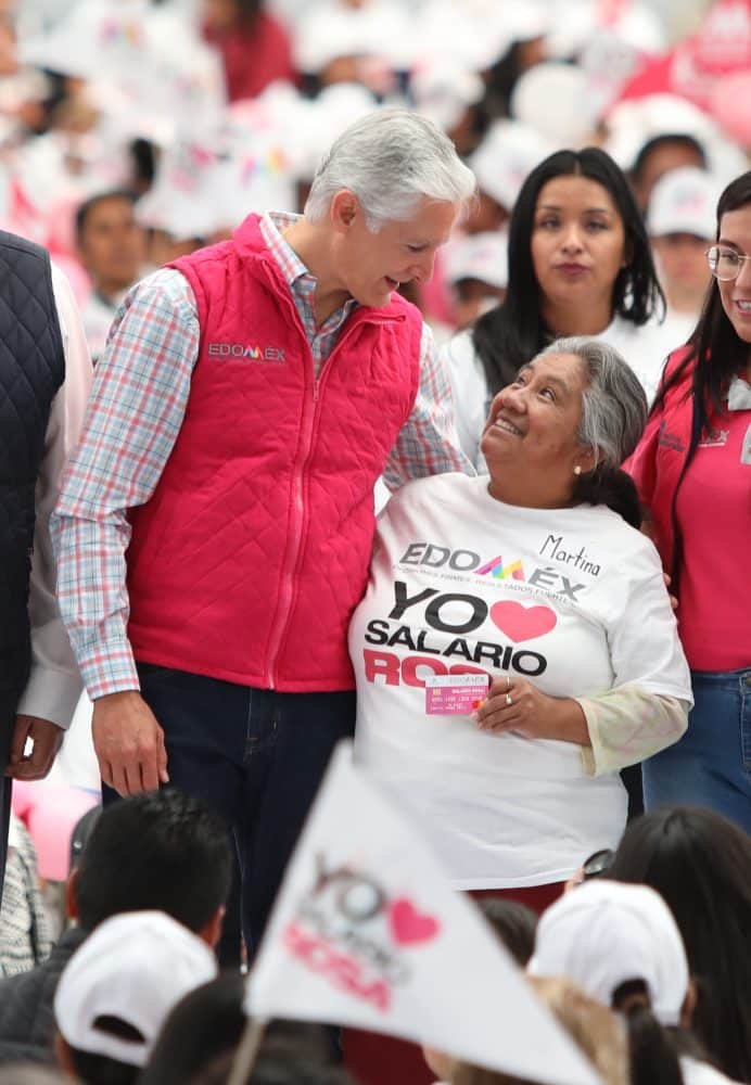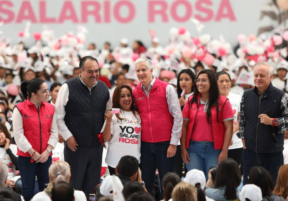 El Gobernador Del Mazo exhortó a las mujeres que este día se convirtieron en beneficiarias de este programa, a difundir las ventajas del mismo en sus comunidades, con el objetivo de que cada vez sean más las jefas de familia de bajos recursos que puedan contar con los apoyos que otorga el Salario rosa.