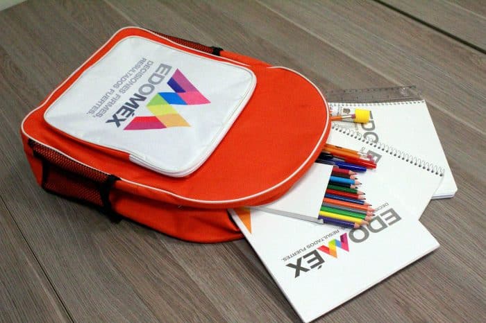 Para primaria se entregará un paquete con cuatro lápices de madera, cuatro bolígrafos de punto mediano, dos de tinta color negro, uno de azul y uno de roja, un pegamento tipo lápiz adhesivo, una regla de plástico de 30 centímetros, una caja de colores de madera con 12 piezas, un cuaderno profesional con 100 hojas blancas, dos cuadernos profesionales con 100 hojas de cuadro chico, un cuaderno profesional con 100 hojas de cuadro grande, un cuaderno profesional con 100 hojas de raya, una libreta de tareas con 42 hojas, un block con 80 hojas blancas en papel bond, una lapicera y una mochila.