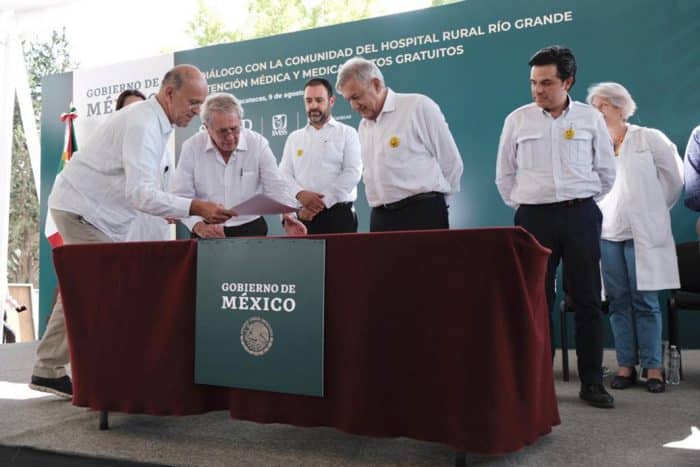 Acompañaron al titular del Ejecutivo federal, el gobernador de Zacatecas, Alejandro Tello Cristerna; el secretario de Salud, Jorge Alcocer Varela; el director general del Issste, Luis Antonio Ramírez Pineda; el titular del Instituto de Salud para el Bienestar, Juan Antonio Ferrer Aguilar; la titular de IMSS-Bienestar, Gisela Lara Saldaña; y el presidente municipal, Julio César Ramírez López.