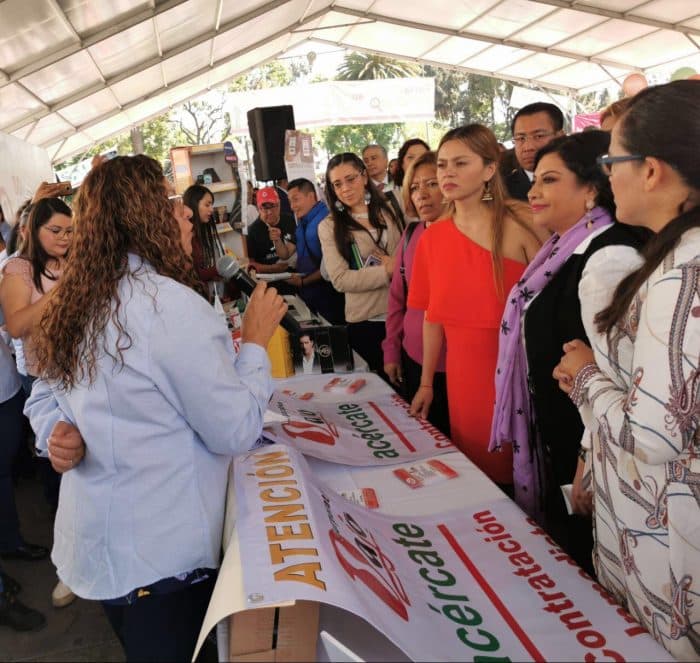 A su vez, la titular de la STyFE destacó la importante participación de la iniciativa privada en esta Feria, a la que asistieron 80 empresas de distintos giros: refresqueras, agua embotellada, artículos deportivos, autoservicios, entre otras, que ofrecieron plazas con salarios dignos y con todas las prestaciones de ley.