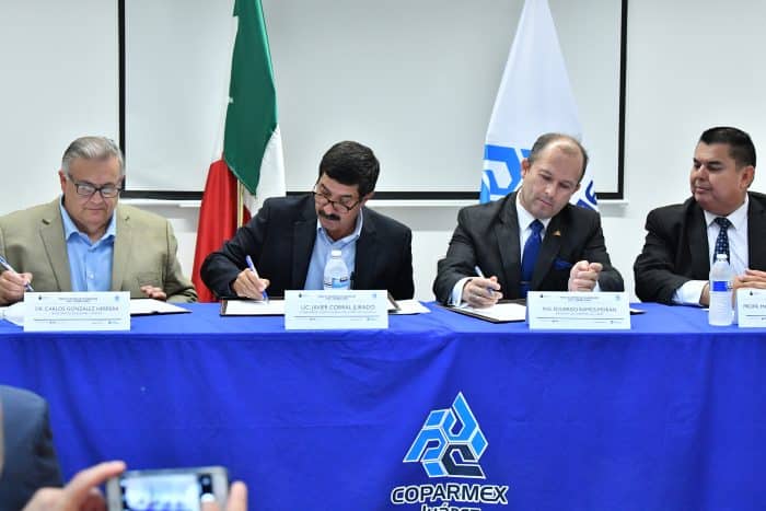 Por parte del Gobierno del Estado signaron el acuerdo el gobernador Javier Corral Jurado y el secretario de Educación y Deporte, Carlos González Herrera, mientras que por el organismo patronal lo hizo el presidente en Ciudad Juárez, Eduardo Ramos Morán.