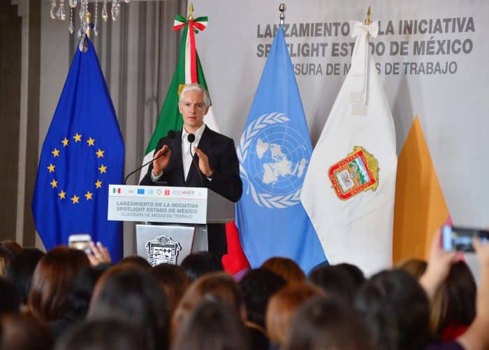 El titular del Ejecutivo estatal sostuvo que “Spotlight” se suma a las acciones que se llevan a cabo en la entidad mexiquense para combatir la violencia de género en los rubros de fortalecimiento del marco legal y políticas públicas, fortalecimiento institucional, prevención y cambio cultural, garantizar el acceso a servicios para las víctimas de violencia y mejorar la disponibilidad y la calidad de datos e información.