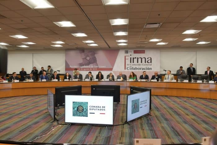 A su vez, el presidente de la Mesa Directiva de la Cámara de Diputados, diputado Porfirio Muñoz Ledo, destacó la importancia del Convenio General de Colaboración, “tratándose de dos Poderes distintos”, e hizo votos porque funcione lo más rápidamente posible.