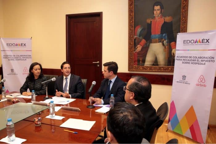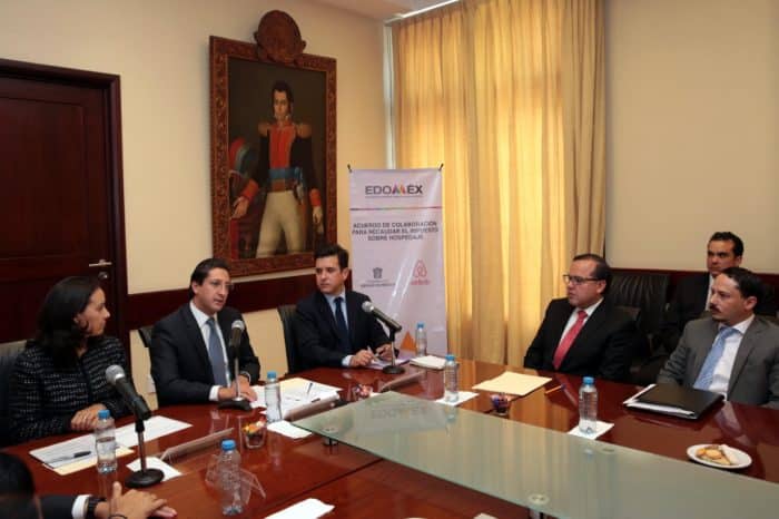 Toluca, Estado de México, 28 de agosto de 2019. El Gobierno del Estado de México, a través de la Secretaría de Finanzas, celebró un acuerdo mediante el cual la plataforma digital Airbnb se compromete a enterar y remitir el 4 por ciento del Impuesto sobre la Prestación de Servicios de Hospedaje para contribuir con la promoción turística de la entidad.