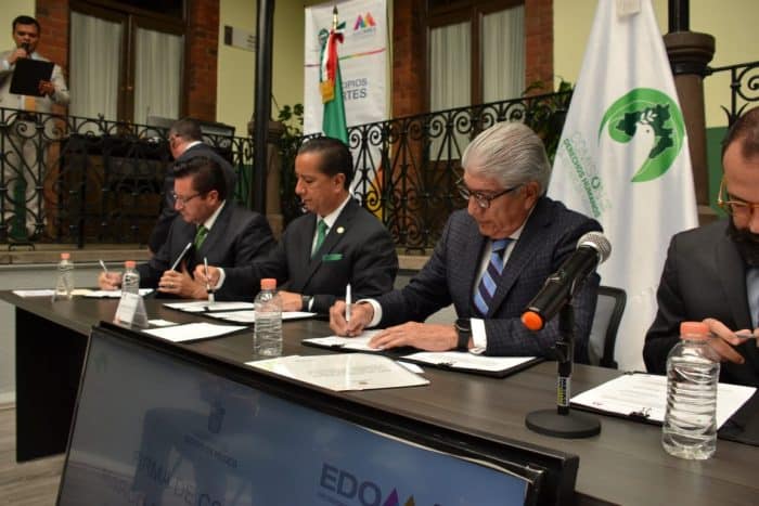 Firmaron el Convenio los Secretarios General de Gobierno, Alejandro Ozuna Rivero, de Justicia y Derechos Humanos, Rodrigo Espeleta Aladro, el Presidente de la Codhem, Jorge Olvera García y, como testigo, el Subsecretario de Desarrollo Municipal, Raúl Domínguez Rex.