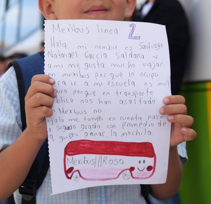 Mientras que Melani, de seis años de edad, dijo que subirse al Mexibús la hace feliz porque parece un arcoiris y le gustaría que hubiera uno exclusivo para los niños.