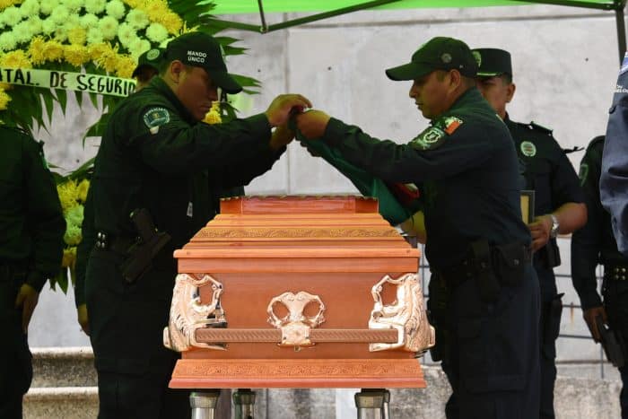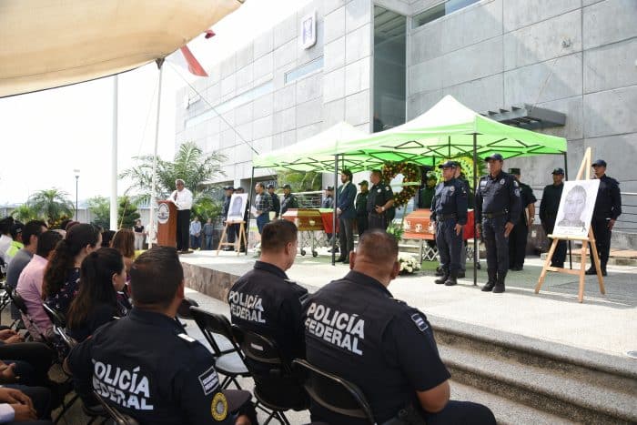 Tras el toque de silencio por parte de la Banda de Guerra de la 24/a Zona Militar, se montó una guardia de honor integrada por Mauricio Termignoni Apodaca, encargado de despacho de la Subsecretaría de Gobierno; el Capitán Mario Isaac Vargas Santomé; Martin Valle Carrera, en representación de la Fiscalía General de la República (FGR); el oficial Carlos Enrique Campos Cueto, en representación de la Policía Federal, y el Comisario Jefe, Alfonso Moreno Tacuba, director general de Unidades Especiales.