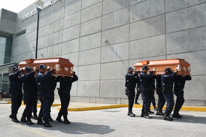 La ceremonia luctuosa se llevó a cabo en el Centro de Coordinación, Comando, Control, Comunicaciones y Cómputo (C5) donde familiares, amigos y compañeros les dieron el último adiós.