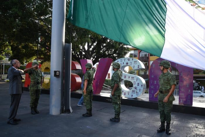 En la Plaza de Armas “General Emiliano Zapata” de la capital morelense, Cornejo Alatorre junto a directores, rectores y personal de los diferentes subsistemas y universidades del sistema educativo estatal, realizaron honores al lábaro patrio, además de entonar el Himno Nacional Mexicano.