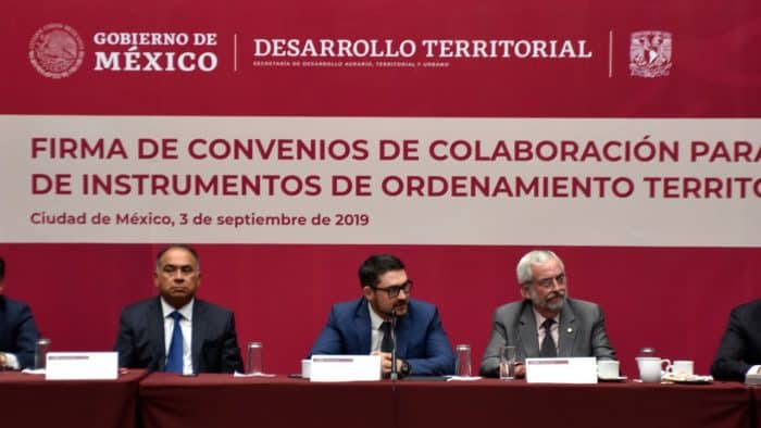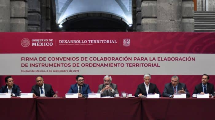 Ciudad de México, 3 de septiembre, 2019.- La Secretaría de Desarrollo Agrario, Territorial y Urbano, y la Universidad Nacional Autónoma de México (UNAM), firmaron convenios de colaboración con estados y municipios de las zonas centro y sur del país, con el objetivo de fortalecer las políticas nacionales y locales en materia de desarrollo urbano, ordenamiento territorial y vivienda.