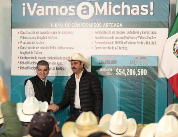 Arteaga, Coahuila de Zaragoza; a 4 de Septiembre de 2019.- En el ejido El Tunal, de este municipio, el gobernador Miguel Ángel Riquelme Solís inició la entrega de apoyos municipalizados de Concurrencia, en los que se aplicará un monto de más de 83 millones de pesos, y además firmó el compromiso del programa “Vamos a Michas”, mismo en el que Estado y Municipio invertirán más de 54.2 millones de pesos en obras prioritarias para Arteaga.