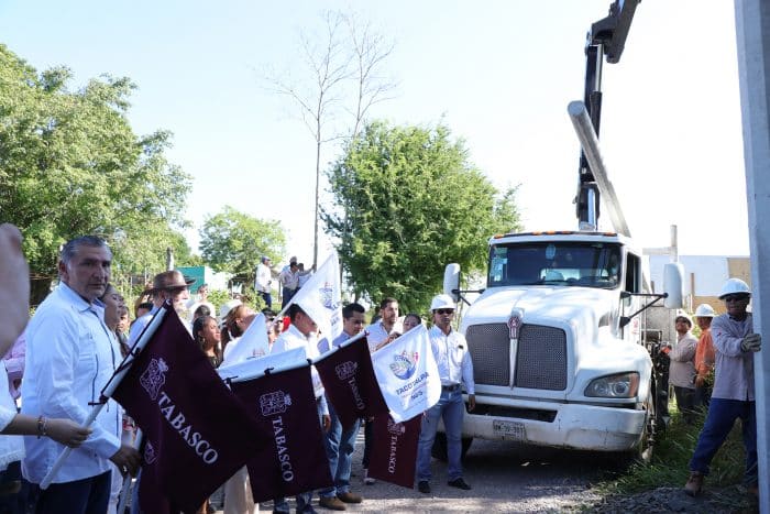 Acompañado de la alcaldesa, Tomiris Domínguez Pérez y la presidenta del Sistema DIF Tabasco, Dea Isabel Estrada de López, el mandatario inició su recorrido por el ejido Lomas Alegres primera sección, donde puso en marcha los trabajos de ampliación de casi cinco kilómetros de la red eléctrica, que implica la instalación de 15 nuevos transformadores.