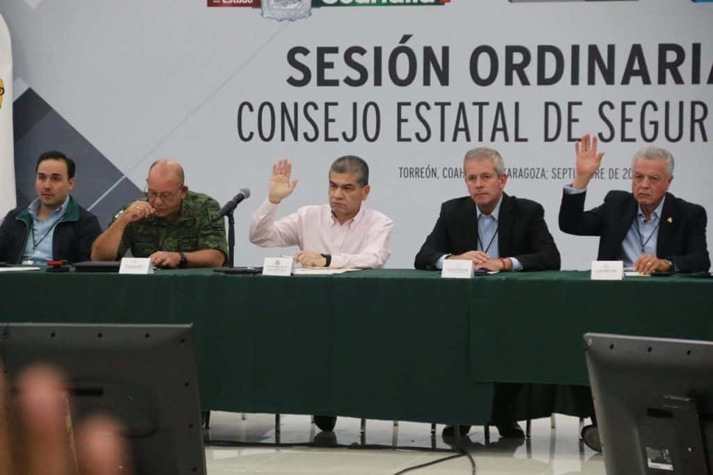 Torreón, Coahuila de Zaragoza; a 10 de Septiembre de 2019.- El Gobernador de Coahuila, Miguel Ángel Riquelme Solís, encabezó el Consejo Estatal de Seguridad y el Consejo Estatal de Protección Civil, en esta ciudad.
