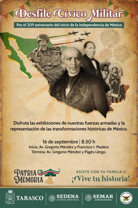 Tabasco da a conocer nuevo horario, el desfile del 209 Aniversario del Inicio de la Guerra de Independencia