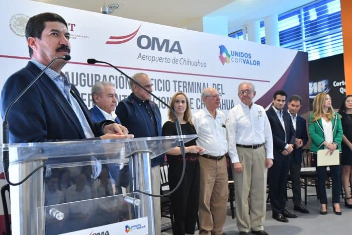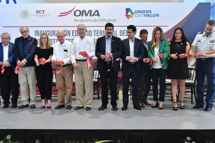 El gobernador Javier Corral y el secretario federal de Comunicaciones y Transportes (SCT), Javier Jiménez Espriú, encabezaron la inauguración del Edificio Terminal del Aeropuerto Internacional de Chihuahua “General Roberto Fierro”, que tuvo una inversión de 318 millones de pesos por parte de Grupo Aeroportuario Centro Norte (OMA).
