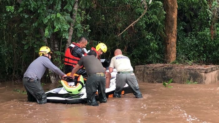 Tras las intensas tormentas provocadas por el Huracán Lorena, a su paso por las costas de Jalisco, elementos de Protección Civil, Secretaría de Marina y un conjunto de 10 voluntarios ciudadanos, rescataron a 17 personas que quedaron atrapadas en el interior de sus viviendas en la localidad de Chamela del municipio de La Huerta, debido a la creciente del río que cruza dicha localidad, el cuál ocasionó inundaciones que superaron el metro y medio de altura, para su rescate fue necesario utilizar lanchas y jet ski. Las personas rescatadas fueron trasladadas al albergue del municipio.
