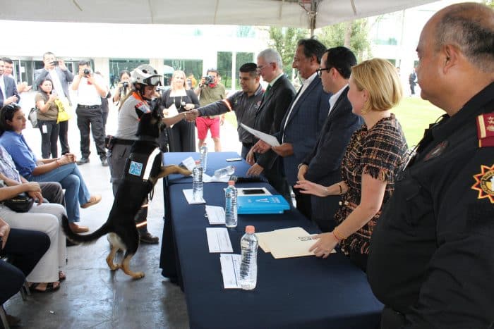 En el marco del día de protección Civil, se develó una estatua de Frida, la perrita rescatista que apoyó durante el terremoto del 19 de septiembre del 2017, la cual estará en la explanada afuera del Pabellón Ciudadano hasta nuevo aviso.