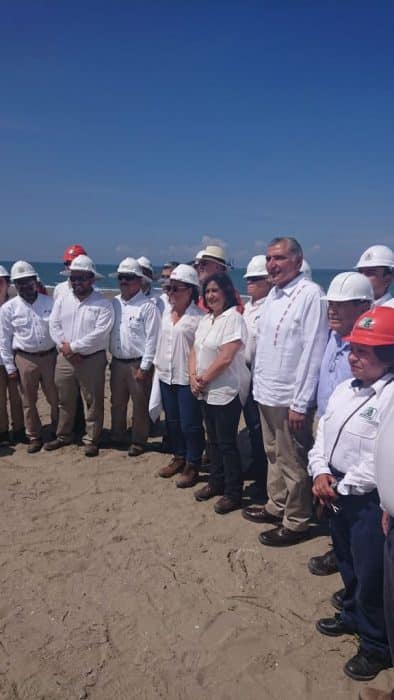 Realiza un recorrido por el terreno destinado a la planta en compañía del gobernador de Tabasco, la secretaria de Energía y funcionarios de Pemex y de la Función Pública