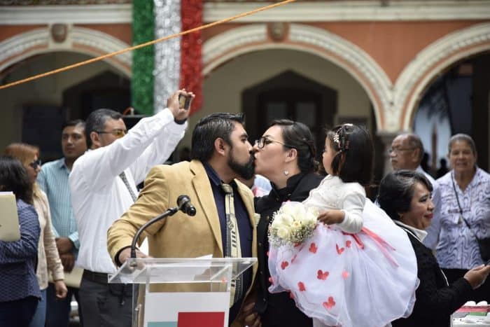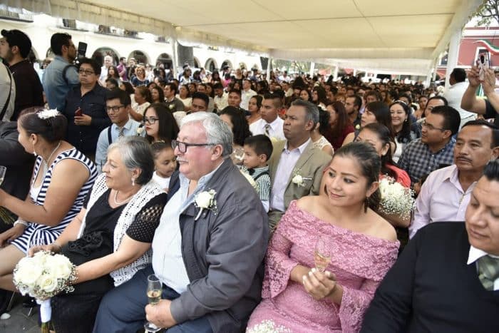 En el zócalo de la capital, Luis Miguel Álvarez Landa, Oficial Mayor de Gobierno, con el poder que le confiere el artículo 555 del Código Civil para el Estado Libre y Soberano de Tlaxcala, legalizó la unión de las parejas que acudieron a contraer matrimonio.