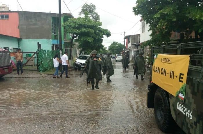Asimismo, ante el desplazamiento e intensificación del mencionado fenómeno meteorológico y su influencia con lluvias torrenciales e intensas en los estados de Aguascalientes, Baja California Sur, Chihuahua , Durango, Guanajuato, Nayarit, Sinaloa, Sonora y Zacatecas, el Ejército y Fuerza Aérea Mexicanos inician la aplicación del “Plan DN-III-E” en su “FASE DE PREVENCIÓN” en las entidades indicadas, desplegando un efectivo de 311 militares, que realizan recorridos de seguridad, revisión de cauces de los afluentes y evacuación de familias.