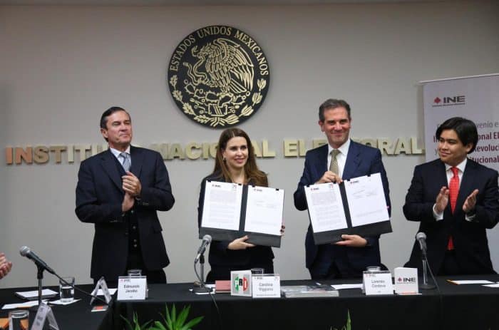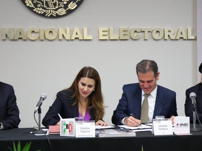 El convenio fue firmado esta mañana por el Consejero Presidente del INE, Lorenzo Córdova Vianello y la Secretaria General del PRI, Carolina Viggiano, así como por los titulares de las direcciones ejecutivas de Prerrogativas y Partidos Políticos y del Registro Federal de Electores, Patricio Ballados y René Miranda, respectivamente, además de Marcela Guerra y Gerardo Triana como representantes del partido ante el INE.