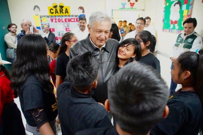 En El Fuerte, el presidente anunció que Sinaloa también se integra al programa La Escuela es Nuestra, que entregará recursos directamente a comités de madres, padres, docentes y alumnos para el mejoramiento de los cuatro mil planteles de educación primaria de la entidad.
