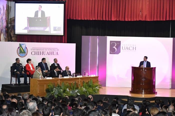 Lo anterior fue dado a conocer por el gobernador Javier Corral Jurado, al acompañar el Tercer Informe de Actividades del rector de la UACH, Luis Alberto Fierro Ramírez, en el Paraninfo Universitario.