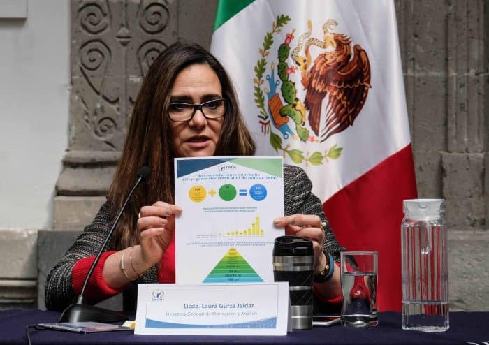 El Cuarto Informe de Seguimiento de Recomendaciones, con fecha de corte al 1 de julio de 2019, fue presentado por el Coordinador General de Seguimiento de Recomendaciones y de Asuntos Jurídicos, Rubén Francisco Pérez Sánchez, y la Directora General de Planeación y Análisis, Laura Gurza Jaidar, y se trata de un ejercicio de revisión que se lleva a cabo anualmente desde 2016, y en él la CNDH informa que, de acuerdo con los resultados del mismo, al 1 de julio pasado este Organismo Nacional ha emitido desde su fundación un total de 2,827 Recomendaciones, de las cuales 2,803 son ordinarias y 24 por violaciones graves. El total de Recomendaciones emitidas se ha dirigido a 3,636 autoridades de los tres órdenes de gobierno; 3,540 autoridades han recibido recomendaciones ordinarias y 96 por violaciones graves.