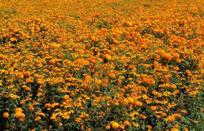 En esta temporada los campos de cempasúchil, crisantemo, gladiola, terciopelo, rosa, nube y alhelí, entre otras especies de temporada, inundan con sus colores naranjas y violetas los paisajes de la entidad e inclinan sus tallos para ser cortados, pues éstas indicarán el camino de vuelta a quienes ya fallecieron.