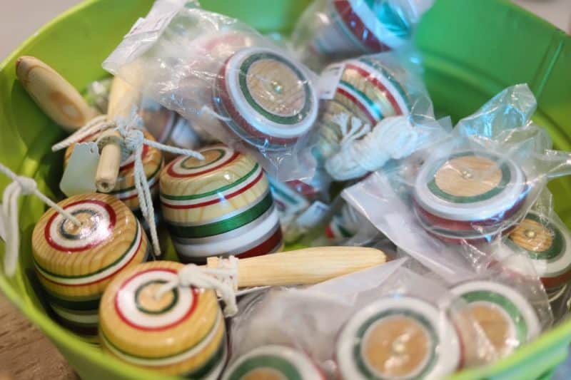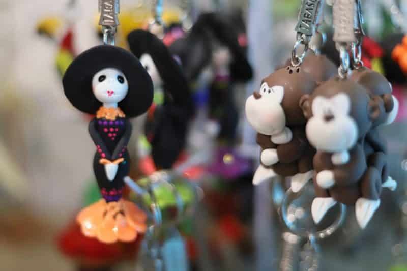 Entre los productos, destacan juguetes para niños, como: papayos, trompos, carruseles, marionetas, baleros, máscaras, rehiletes, lapiceros etc., elaborados en fibras vegetales, madera, semillas, entre otros materiales, para satisfacer a un público infantil que acude al museo, así mismo se expenden bolsas de mano, llaveros, alhajeros, adornos diversos, chocolates y dulces, para toda la familia.