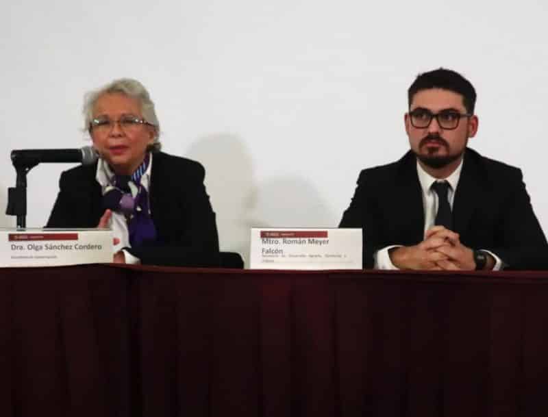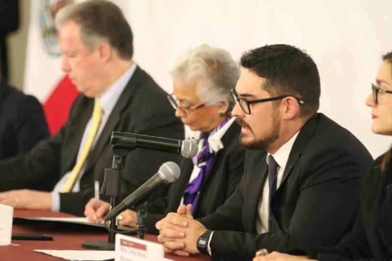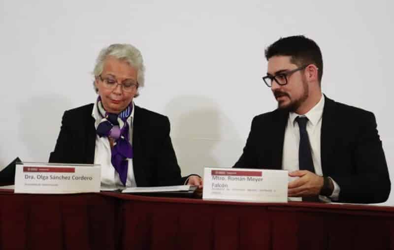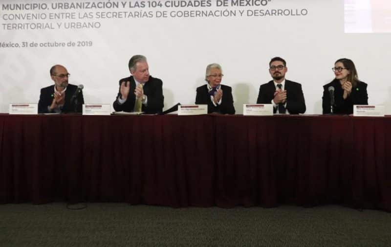 Signaron el documento la secretaria de Gobernación, Olga Sánchez Cordero, y el secretario de Desarrollo Agrario Territorial y Urbano, Román Meyer Falcón; así como el coordinador del Instituto Nacional para el Federalismo y el Desarrollo Municipal (Inafed), Rafael Cortés Gómez, durante la inauguración del foro “El Municipio, Urbanización y las 104 Ciudades de México”, realizado en el conjunto Bucareli.