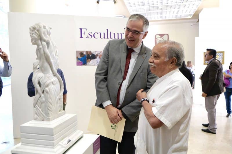 En su oportunidad, Edith Hernández y Miguel Curado, directora del Centro de Artesanías Morelos y alumno del Centro de Artesanías Independencia, respectivamente, contaron su experiencia de cómo les cambió la vida ingresar a los talleres que ofrece el IMSS, ya sea en la lucha contra el cáncer de mama o cómo afrontar una jubilación.