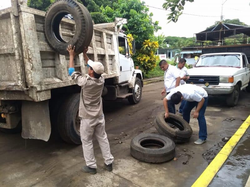 En la localidad Matacapan, personal de Vectores, en coordinación con el Ayuntamiento de San Andrés Tuxtla y estudiantes de Enfermería del Colegio Nacional de Educación Profesional Técnica (CONALEP), llevó a cabo una descacharrización masiva y limpieza de depósitos de agua para consumo humano.