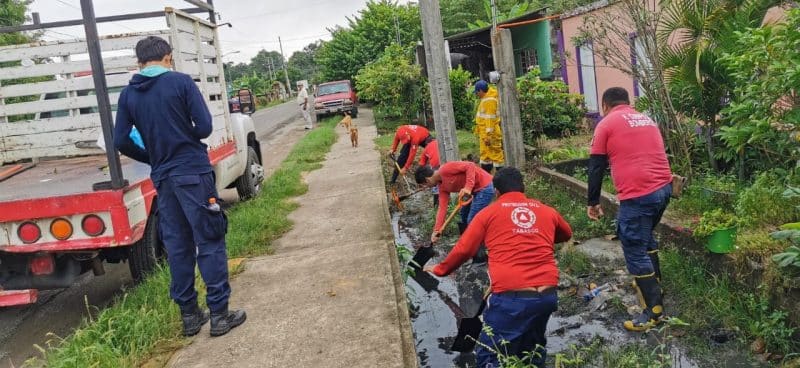 El Centro Regional Costa, en coordinación con la UMPC Jalpa de Méndez, realizó recorrido en la cerrada Prolongación Justo Sierra en el barrio San Felipe de Jesús, donde se brindó apoyo con una bomba de cuatro pulgadas para sacar el agua de dos viviendas y de la calle que se encontraba anegada; asimismo, se atendió reporte en el poblado Ayapa, colonia San Antonio, para el desazolve de alcantarillado que atraviesa una calle de dicha comunidad para evitar anegaciones en casas de la zona.
