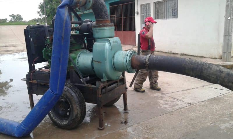 En el municipio de Centro, personal de bomberos, en coordinación con la Unidad Municipal, mantienen monitoreo constante a las bombas de succión instaladas en el sector Valle Verde de la colonia Gaviotas Sur, la cual, se repuso manguera que fue dañada por un vehículo pesado, La Ladrillera y Josefina Vicens, colonia Miguel Hidalgo e Indeco.