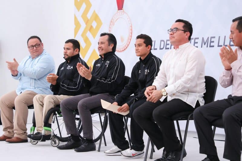 Asimismo, el Gobernador entregó reconocimientos a Rebeca Hernández Carmona (paranatación); Jessua Aziel Rivera Domínguez (taekwondo), Carlos Alberto Solano López (futbol americano), Daniela Garzón Martínez (tenis) y Susana Hernández Barradas (natación); al equipo Linces, de futbol americano, los entrenadores José Luis Artiles de León (natación), Patricia Torres Luna y Paulino Lira Ferral (atletismo master).