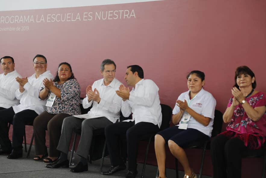 Durante la ceremonia, el titular de la SEP, Esteban Moctezuma Barragán, acompañado del gobernador de Yucatán, Mauricio Vila Dosal, señaló que, “eso que parece tan fácil como depositar la confianza en la gente, es lo que hace el Presidente y que cambiará radicalmente la relación entre pueblo y gobierno”, porque todo se hará de manera corresponsable, entre ambos actores.