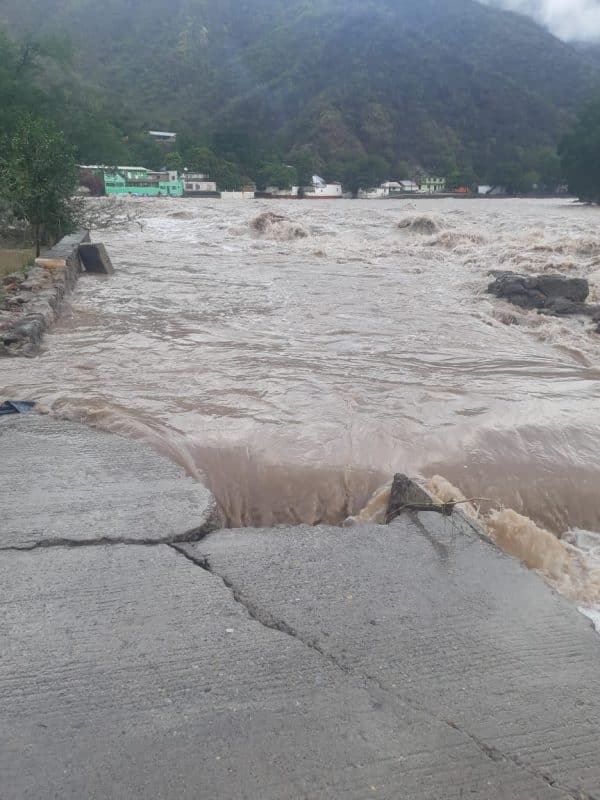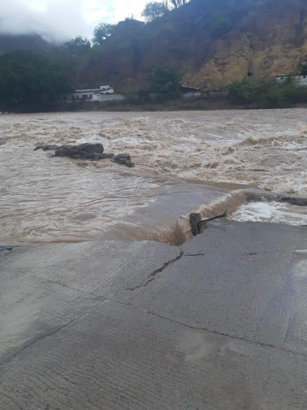Se perdieron dos puentes colgantes por la subida del nivel del río, se dañó la calle del Malecón y parcelas de cultivo, y en total se desalojó a 100 personas.