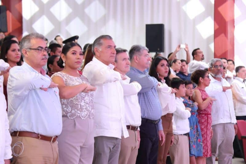 En la Casa de la Cultura, el titular del Ejecutivo, participó en los honores a la enseña nacional y escuchó con atención el informe de inversiones, avances y logros que la presidenta municipal presentó al pueblo de Tacotalpa.