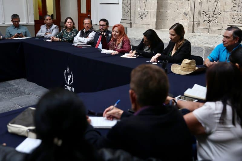Previamente, Rosario Piedra Ibarra recibió en dichas instalaciones de la CNDH a familiares de personas desaparecidas provenientes de diversas entidades, quienes manifestaron diversas inquietudes y solicitaron el apoyo de este Organismo Nacional para determinar el paradero de sus seres queridos. Tras expresarles su solidaridad y apoyo, la Ombudsperson nacional indicó que se desarrollarán diversas acciones para reforzar las labores de búsqueda y atender sus demandas.